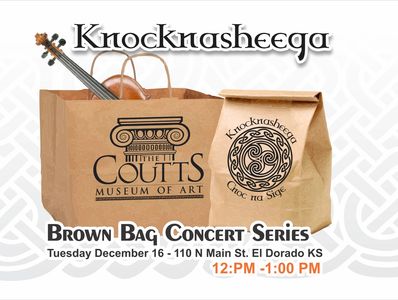 Knocknasheega is proud to return to The Coutts Museum of Art. This year we will be performing as part of the Brown Bag Concert Series. It's the holiday season, so we'll bring a mixed bag of festive favorites and hooley fair. Share a meal with new friends and enjoy live Celtic Music with Knocknasheega! This a bring your own meal in a bag event hosted by the Coutts Museum of Art in El Dorado Kansas!